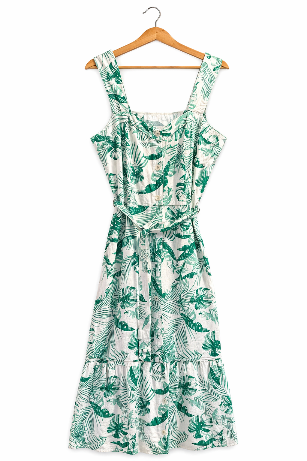 George suvekleit, laiad õlapaelad, keskel seotav vöö, ees nööbid