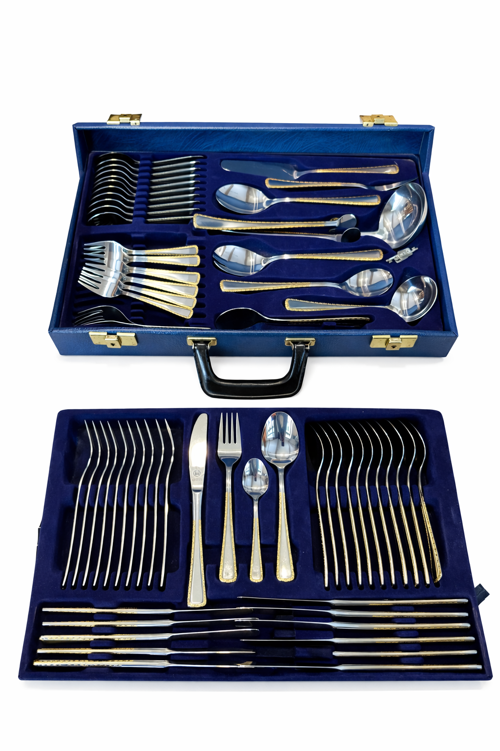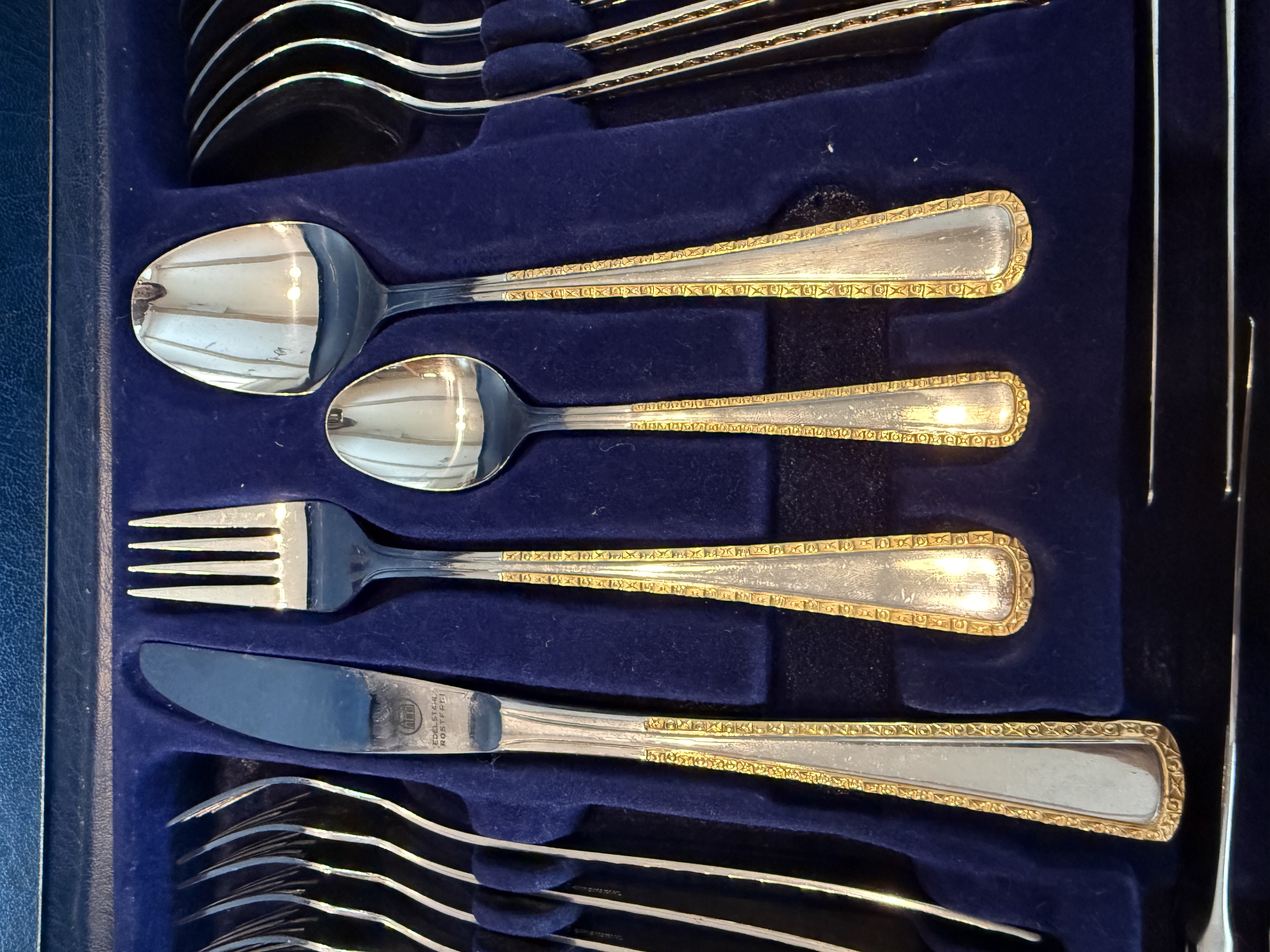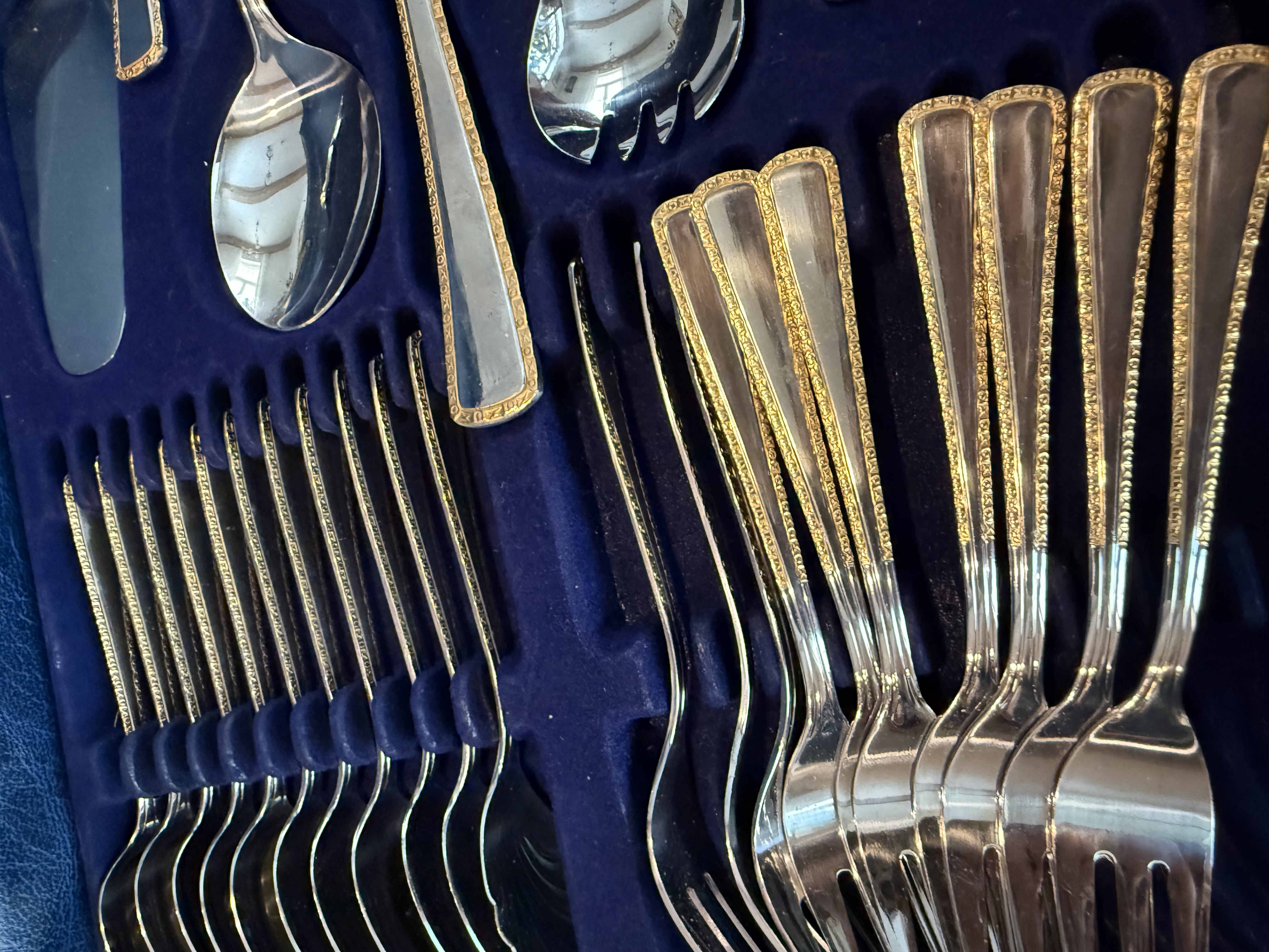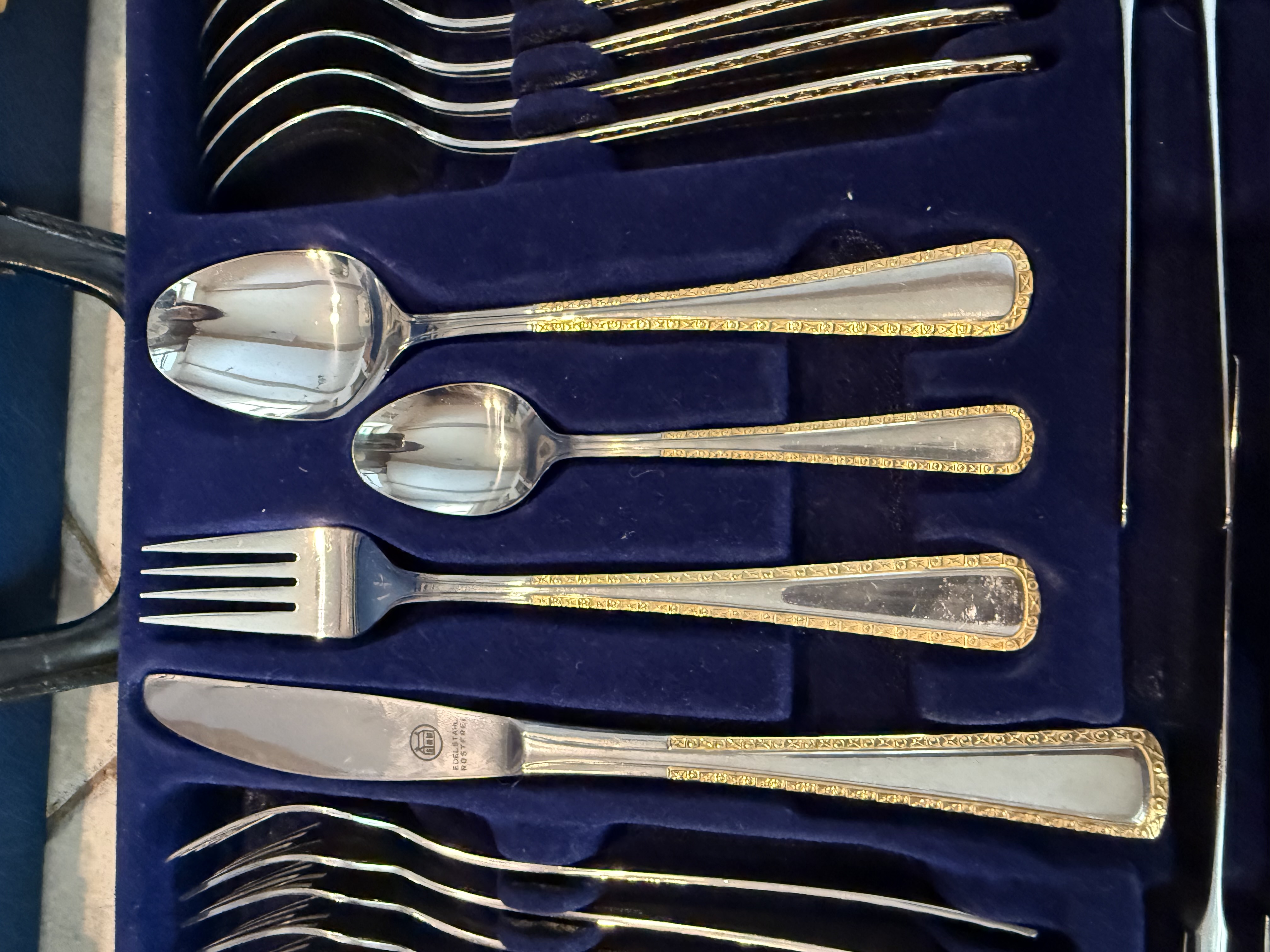 24 karaadise kullatisega, roostevaba 68-osaline Solingen Olympia söögiriistade komplekt kohvris