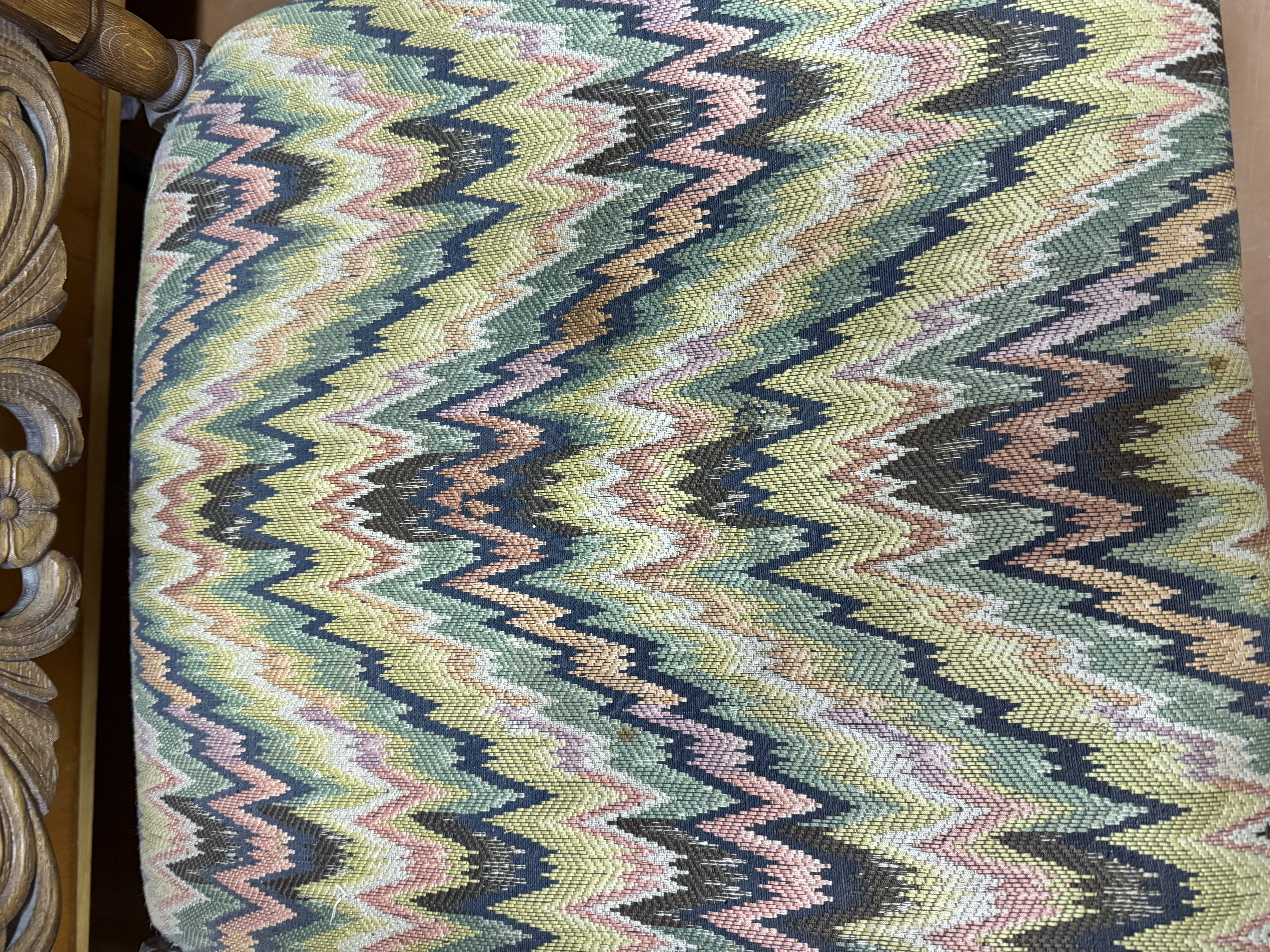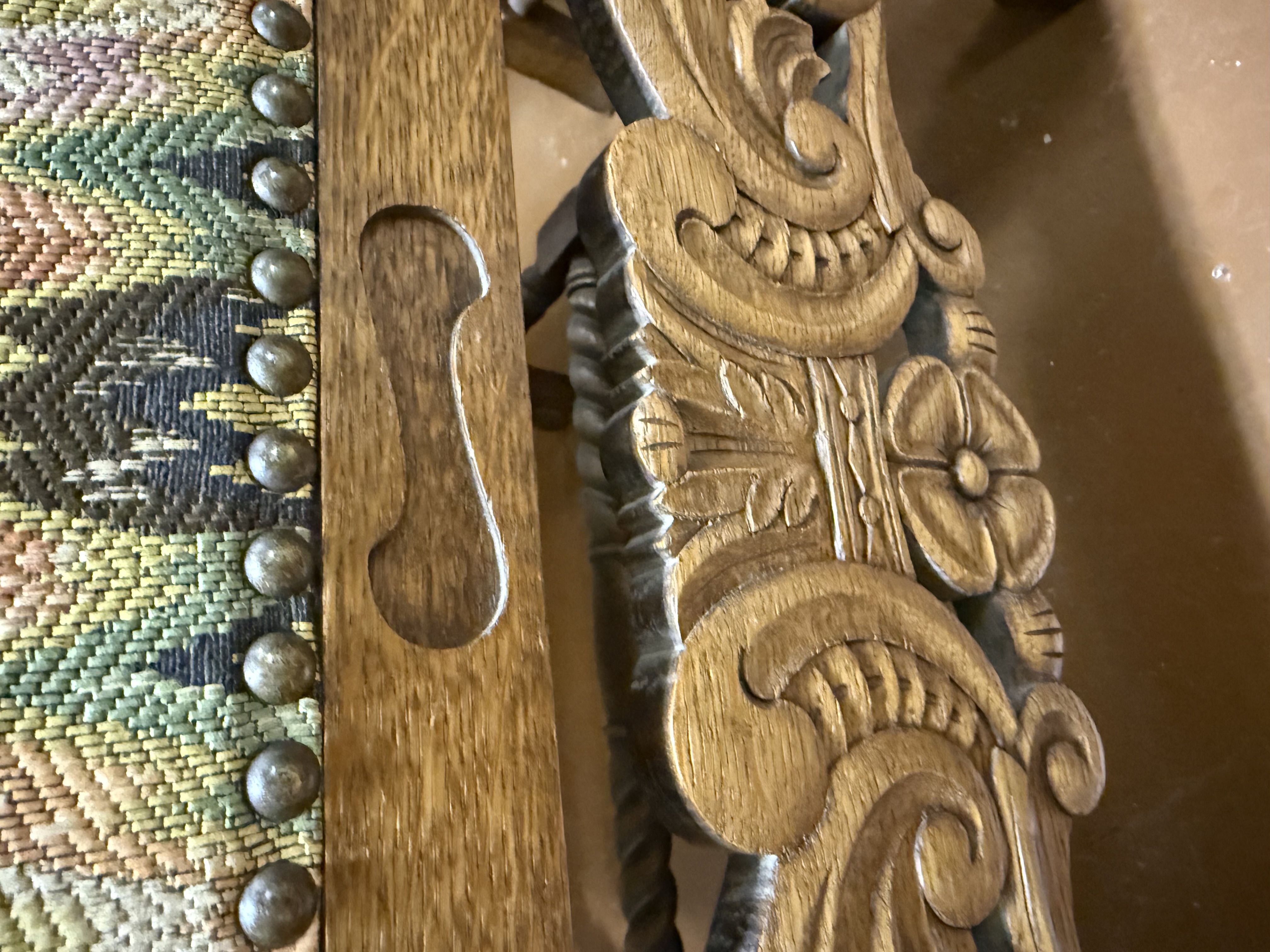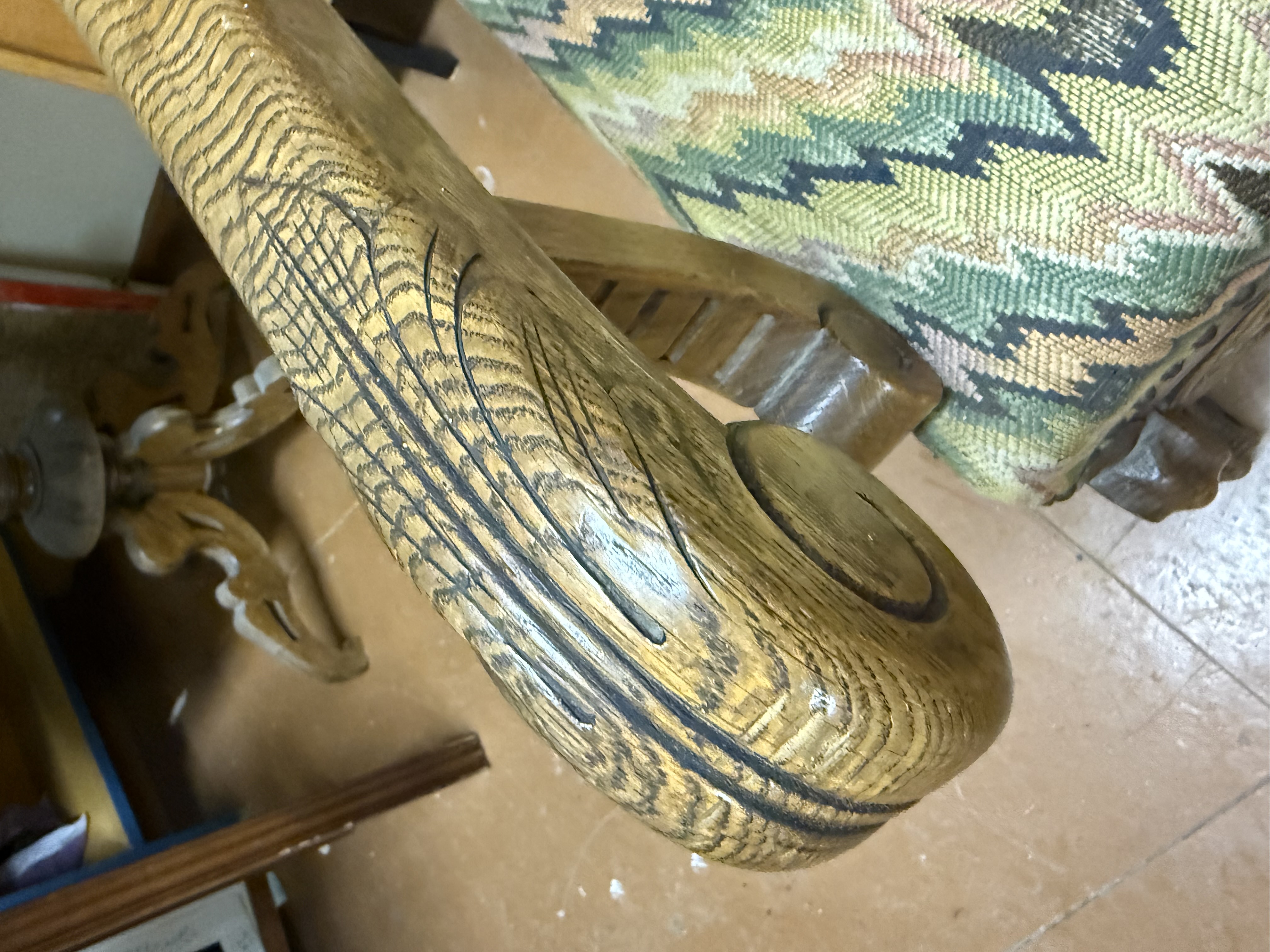 Antiikne, tammepuust, nikerdustega suur ja raske, nn. kirjutuslauatool
